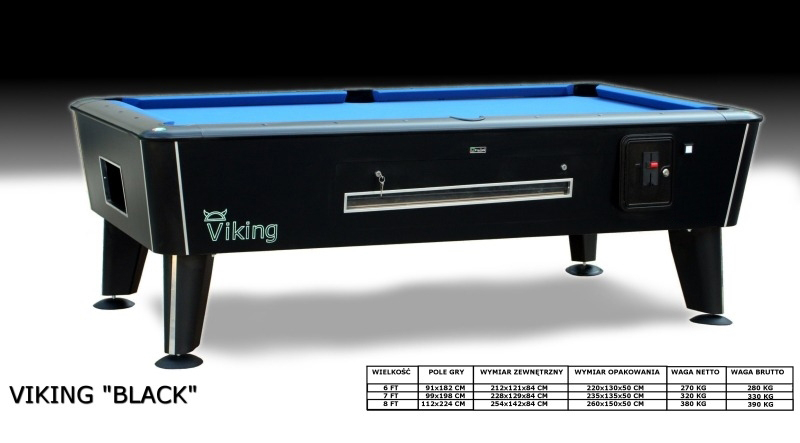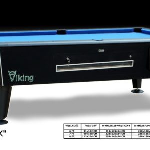 Viking to bardzo popularny stół z wrzutnikiem do użytku komercyjnego. Jest wykonany z laminowanej sklejki HPL. Idealny do restauracji, pubów, barów i hoteli. Viking wyróżnia się bardzo trwałą konstrukcja i niezawodnością. Elektryczny mechanizm zwalniający bile uniemożliwia grę bez wcześniejszej zapłaty. Model Viking posiada aluminiową koronę stoły, która zwiększa jego odporność na uszkodzenia. Zaokrąglony kształt ramy uniemożliwia stawianie na jej powierzchni jakichkolwiek przedmiotów. Viking jest dostępny w następujących rozmiarach: 6 ft, 7 ft, 8 ft.